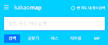 다음이 카카오로 통합되었기 때문에 지도도 카카오맵으로 명칭이 바뀌었는데요. 먼저 PC버전을 보면 검색창 아래에 지도 메뉴를 확인하시면 검색, 길찾기, 로드뷰, 버스정보, 지하철노선도를 확인할 수 있습니다.